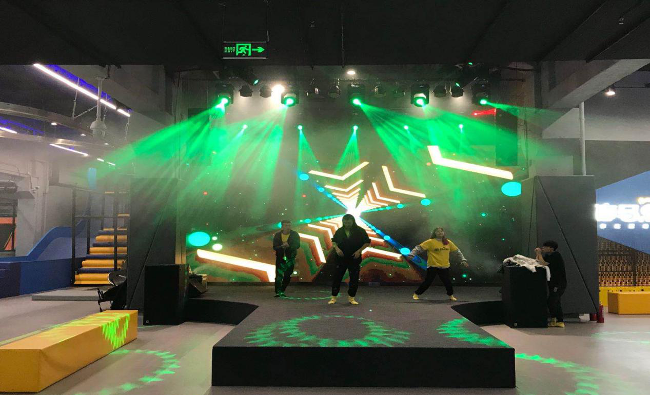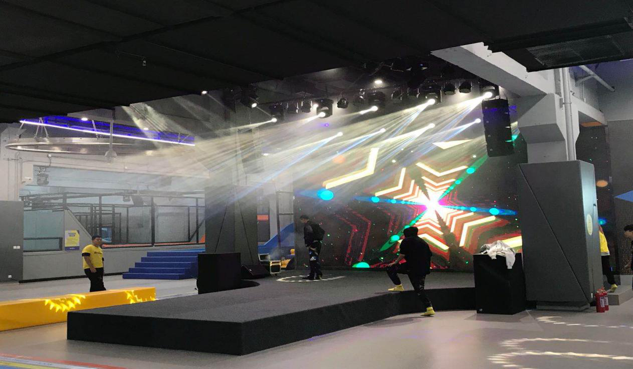 燈光方面,為了營(yíng)造舞臺(tái)區(qū)域的演出效果。使用了Baiangde GS330光束燈20臺(tái),LED染色燈40余臺(tái)及其它10余臺(tái)效果燈具。部分極限運(yùn)動(dòng)區(qū)域,配合場(chǎng)地音樂(lè)動(dòng)感需求,也針對(duì)性安裝了十多臺(tái)無(wú)極幻影燈。